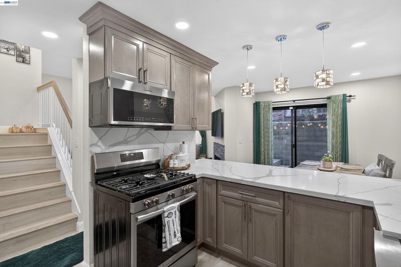 This stunning Fully Furnished, 3-bedroom, 2.5-bath home has been thoughtfully updated throughout and offers modern style with inviting comfort. The gourmet kitchen features brand-new cabinetry, granite countertops with coordinating backsplash, an oversized stainless steel farmhouse sink, and stainless steel appliances—perfect for both everyday living and entertaining. New laminate flooring and recessed lighting enhance the home’s fresh, contemporary feel. The open floor plan flows seamlessly into the living room, highlighted by vaulted ceilings and a striking fireplace that creates a warm and dramatic focal point. Custom paint throughout the home provides a clean, move-in-ready canvas. The spacious primary bedroom suite boasts vaulted ceilings and a beautifully updated en-suite bathroom with laminate flooring and a dual vanity topped with granite counters. Additional bedrooms are well-sized and versatile for guests, home office, or family needs. Dimmable lighting throughout. A 2-car garage offers convenient parking and includes built-in cabinets for additional storage. Step outside to the private rear yard featuring a patio off the dining area, complemented by low-maintenance landscaping including a drip system and fruit trees along with an additional deck—perfect for relaxing.