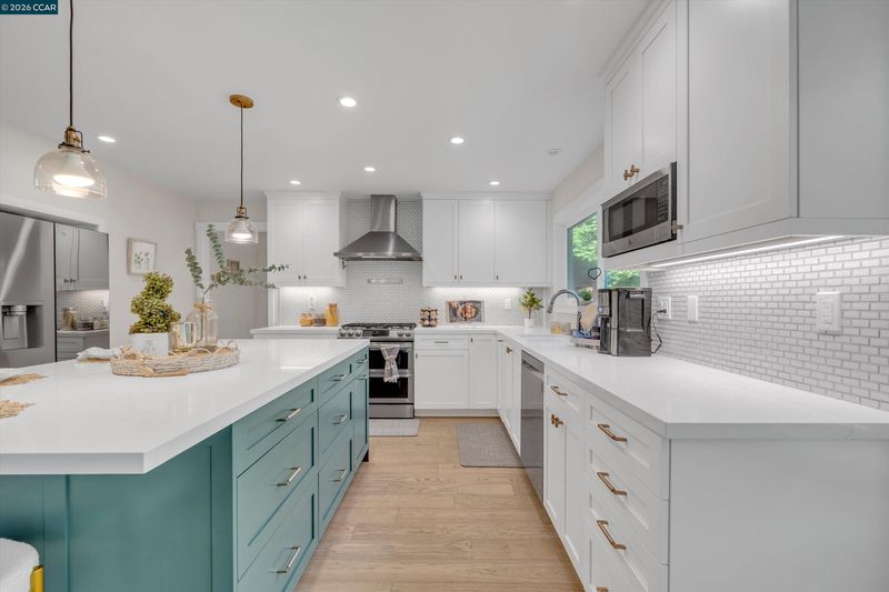 Ideally located on the Pleasant Hill border in the sought-after Virginia Hills neighborhood and served by well-regarded Pleasant Hill schools, this beautifully updated home offers the perfect blend of space, style, and location. Designed for modern living, the open and inviting floor plan is ideal for both everyday comfort and effortless entertaining. The remodeled kitchen is the heart of the home, featuring a generous quartz island with seating, soft-close cabinetry, classic subway tile backsplash, stainless steel appliances, and seamless flow into the family room and backyard. Step outside to a private outdoor retreat with a patio, lush lawn, and vibrant garden spaces—perfect for gatherings or quiet moments alike. Inside, the living and formal dining areas are enhanced by stylish LVP flooring, creating a warm yet sophisticated atmosphere. Upstairs, the spacious primary suite is a true sanctuary w/ a fireplace, scenic hill views, and a tranquil feel. Four additional bedrooms and an updated bath provide flexibility for family, guests, or work-from-home needs, w/ balcony access adding to the charm. Conveniently close to neighborhood parks, Briones Regional Park, shopping, dining, & major commute routes including Hwy 680, 4, 24, BART, and Amtrak—this is Bay Area living at its best!