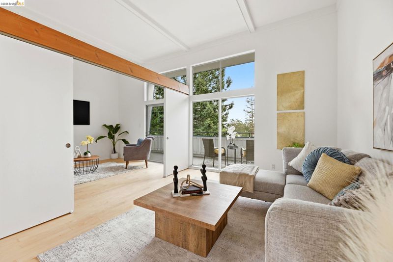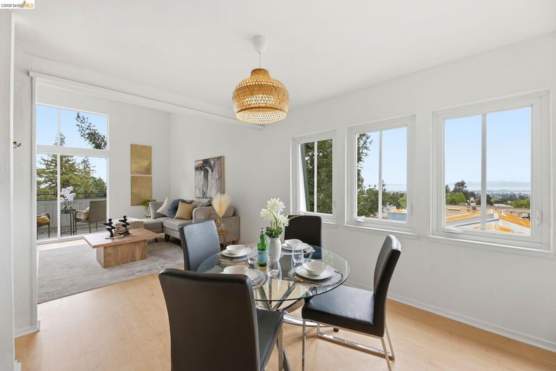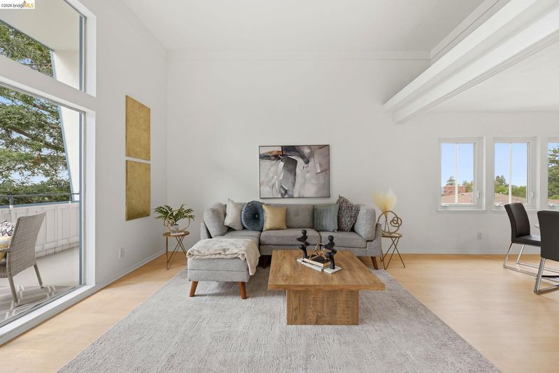 Come see this light-filled top-floor condo in prime North Berkeley with views of the Bay & Golden Gate Bridge. Tall ceilings and expansive windows create an airy feel throughout. The kitchen opens to the living and dining areas, leading to a private balcony perfect for enjoying sunsets. Spacious bedroom plus flexible bonus space ideal for a second bedroom, office, or guest area. Elevator building with secure parking and beautifully maintained common areas. Ideally located near University of California, Berkeley, shops, cafes, and transportation.