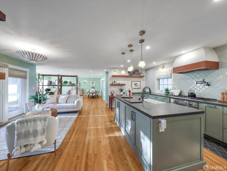 - Breakfast Area, Island w/Sink, Kitchen/Family Combo, Pantry Cabinet, Quartz Counter