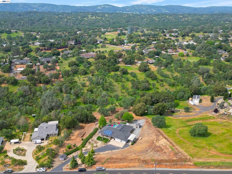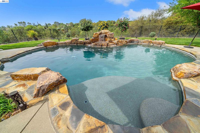 Private foothill retreat on 3.5 acres in scenic Copperopolis. Beautifully updated home, 4 bedrooms, 3 bathrooms, within 2,570sq. ft. of comfortable living space with updated flooring throughout, a remodeled kitchen, and updated baths. Family room features a gas fireplace and doors leading to the backyard, creating ideal indoor-outdoor living. Spacious primary suite with jetted tub, separate shower, double sinks and gas fireplace. Ceiling fans are located throughout the home, and a convenient hall bath offers direct access to the pool area. Step outside to a private backyard oasis featuring a pool with waterfall, fenced with covered patio, and built-in BBQ with refrigerator—perfect for entertaining. The landscaped grounds include fruit trees and plenty of usable acreage for horses, gardening, and/or recreation. Additional highlights include paid solar, a deep well with home water filtration system, 3-car garage, covered RV/boat storage, storage shed.