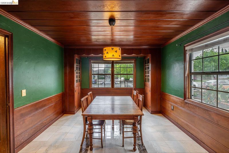 Open House Saturday 4/4 11am-1pm. Step back in time to this rare, character-rich 1941 gem in the heart of Antioch. From the moment you walk in, you're greeted by original knotty pine wood cabinetry and wall paneling in the kitchen, original wood-paneled ceilings, built-in bookshelves, and a charming bay window seat in the living room — all lovingly preserved from 1941. The dining room stuns with original wood paneling, wood ceiling, and built-in cabinetry, now complemented by updated marble tile floors. The kitchen shines with updated granite countertops and a beautiful stone backsplash. Cozy up by the living room fireplace, elegantly updated with a marble tile surround. The original 1941 wood staircase leads you upstairs to built-in cabinetry, two bedrooms with a connecting crawl space, attic storage, and a full bath. A convenient half bath is located downstairs. The laundry room off the kitchen features a private side entrance. The detached garage adds storage and flexibility. Outside, enjoy a generous 5,314 sq ft lot. This home is a rare opportunity to own a piece of history with timeless craftsmanship and thoughtful updates throughout. Truly one of a kind — schedule your showing today.