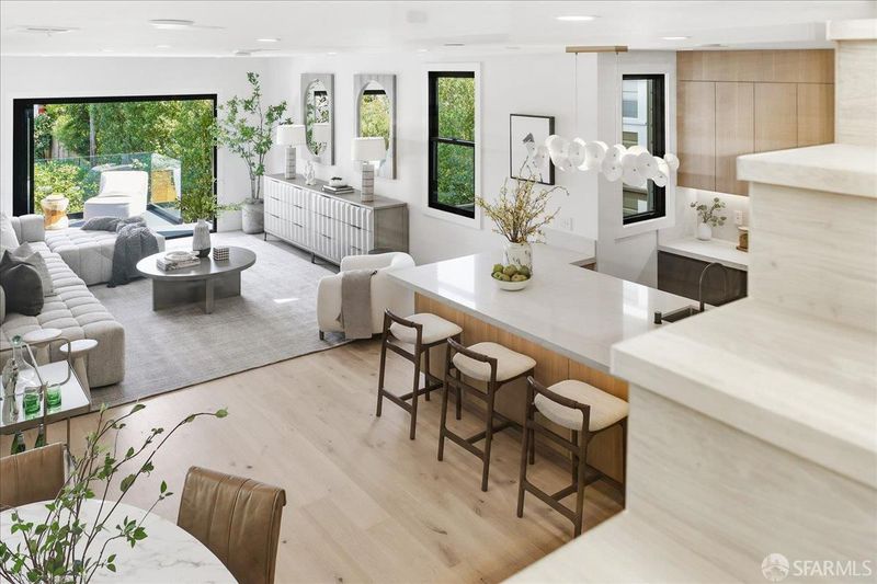 Welcome to 554 18th Avenue, a beautifully reimagined Edwardian residence nestled in the heart of the Richmond District, just moments from Golden Gate Park. Fully renovated and thoughtfully expanded down to the studs, this exceptional three-level home showcases meticulous craftsmanship and a seamless blend of classic architecture with modern design. Offering approximately 3,280 square feet of living space, the home features 5 bedrooms, 3 full bathrooms, and a powder room perfectly suited for both comfortable everyday living and sophisticated entertaining. The light-filled main level features a formal living room and an open-concept layout that seamlessly connects the chef's kitchen and dining area to a spacious family room. From here, doors open directly to a private deck and expansive backyard, creating effortless indoor-outdoor living. The upper level includes 3 bedrooms and 2 bathrooms, highlighted by a generous primary suite with a spa-like bath and walk-in closet, along with a conveniently located laundry room. The lower level is designed for versatility and comfort, featuring a large media/recreation room with a stylish wet bar, 2 additional bedrooms, a full bathroom, and a second laundry area ideal for guests, extended living, or flexible use. Curated with high-end finishes throughout, the home showcases custom detailing, premium materials, and refined design elements, including a Multiroom Audio System, designer lighting, Thermador appliances, European cabinetry, elegant tile finishes, engineered hardwood flooring, and Hansgrohe fixtures. A one-car garage with EV charging adds modern convenience. Ideally located with easy access to transit, parks, shops, and dining, this turnkey residence offers a rare opportunity to own a fully renovated home in one of San Francisco's most desirable neighborhoods.