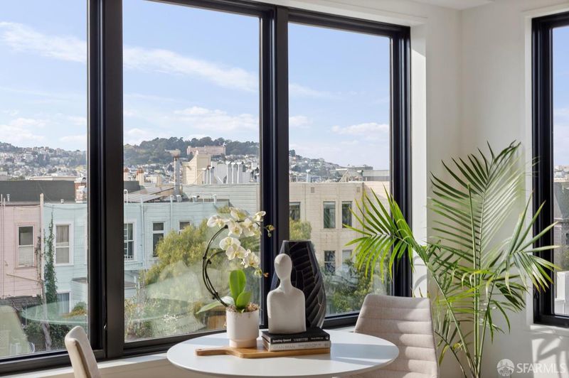 Nestled in the vibrant heart of the Mission & Valencia Corridor, this newly constructed boutique building is a finely tuned balance of function and form, with breathtaking views in every direction. Unit 503 sits on the top floor, where soaring windows flood the space with natural light and frame stunning views of Twin Peaks and the downtown San Francisco skyline a daily reminder of the city you call home. The open living and dining area is bathed in sunlight throughout the day, creating a warm and inviting atmosphere that's hard to find at this price point. Refined bathrooms offer custom vanities with under-mount sinks, tub and shower combinations with tile surrounds, and built-in shelving. These residences are conveniently located near the hottest Valencia Corridor shops and restaurants, and close to BART and public transportation. Features include hardwood floors, in-unit laundry, Samsung/Bosch appliance package, heating & air-conditioning, and soundproofing between units and common walls. Price includes the largest parking space in the building. The building amenities include bike storage, shared rear garden, and elevator access to all levels including a spectacular shared roof deck with 360-degree views.