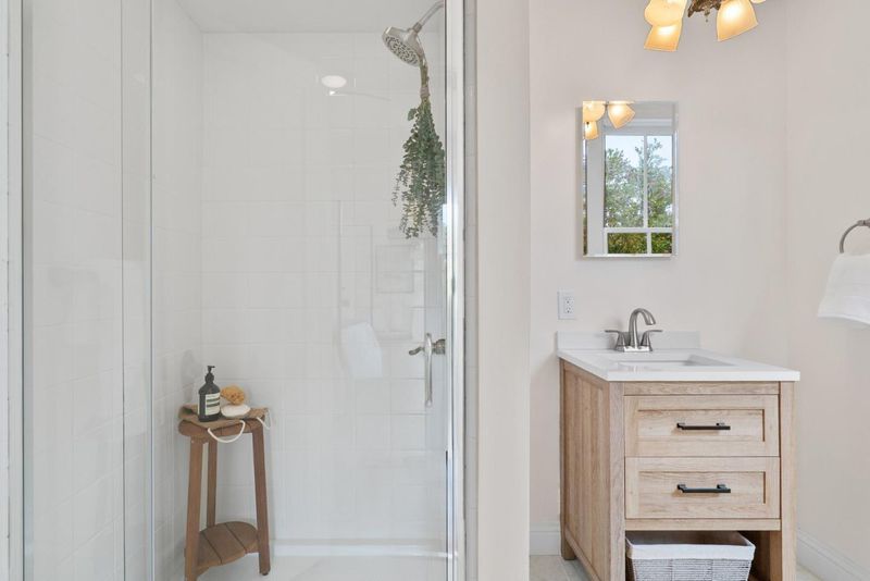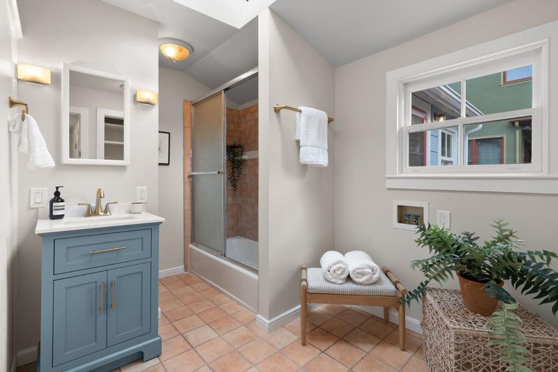- Full on Ground Floor, Primary - Stall Shower(s), Shower and Tub, Skylight, Tile, Tub, Updated Bath