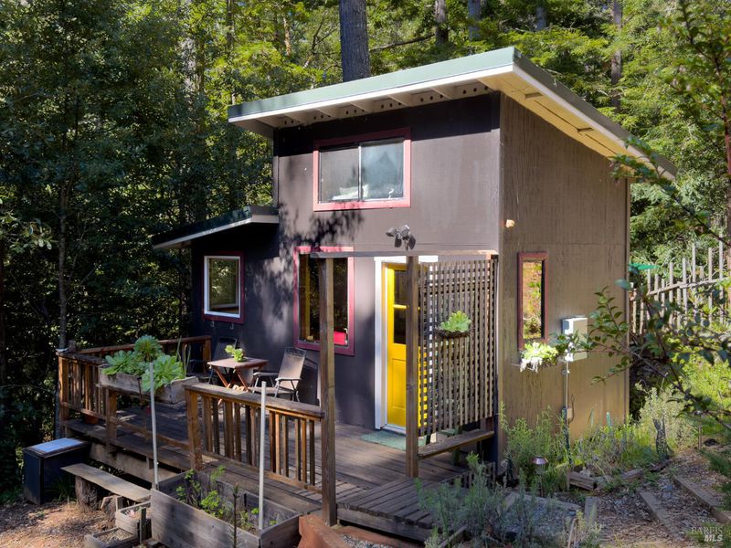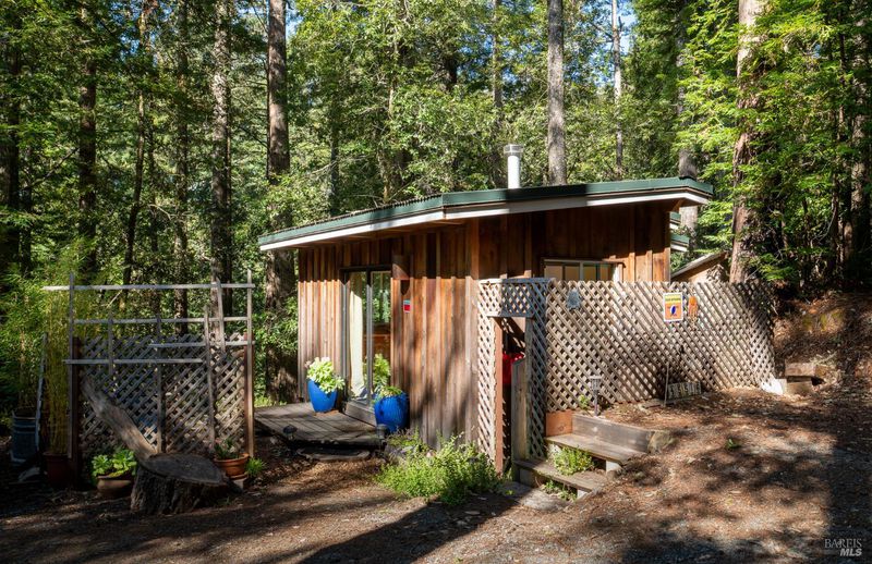 Serendipity, A private cottage in the woods. Expansive decks and privacy at the end of the lane. Sitting on over 2 private acres with trail to creek. An adorable home for full time or a great getaway. Charming out buildings. Minutes to Anchor Bay shopping and Anchor Bay Beach.