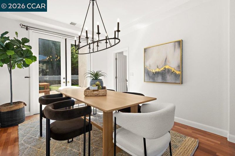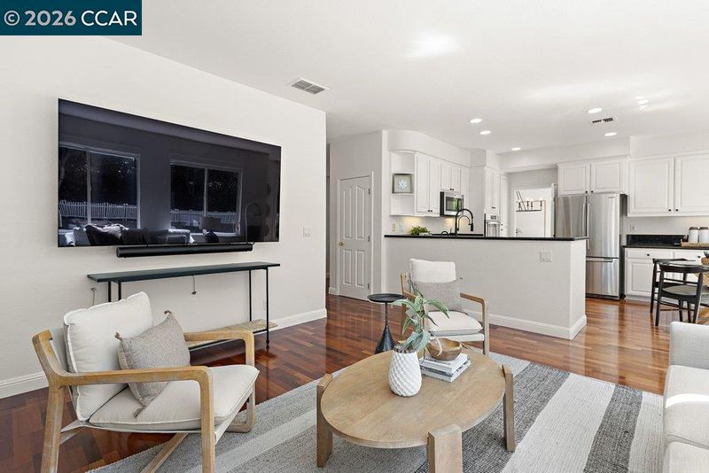 Welcome home to this Thomas Ranch property nestled in the Twin Creeks area. This beauty offers a bright, open floor plan with soaring ceilings and abundant natural light. The inviting entry leads to spacious living and dining areas with hardwood flooring, creating a warm and welcoming feel. The kitchen features solid slab countertops, ample white cabinetry, stainless steel appliances, and a functional layout that opens to the family room—ideal for everyday cooking and entertaining. Large picture windows and glass doors provide views of the private backyard, which features a large paver patio and a fully landscaped yard. Upstairs includes 3 bedrooms and a comfortable primary suite with a walk-in closet, dual vanities, a soaking tub, and separate shower. Newer faucets in bathrooms and kitchen, interior of home painted including walls, ceilings, doors and trim. Additional highlights include a 2-car garage, Tesla charger in garage, indoor laundry, and a low-maintenance yard. Conveniently located near schools, parks, restaurants, shopping, and easy commuter routes, this home offers excellent value in a sought-after neighborhood. Don’t miss your chance to call 771 Pradera Way home!