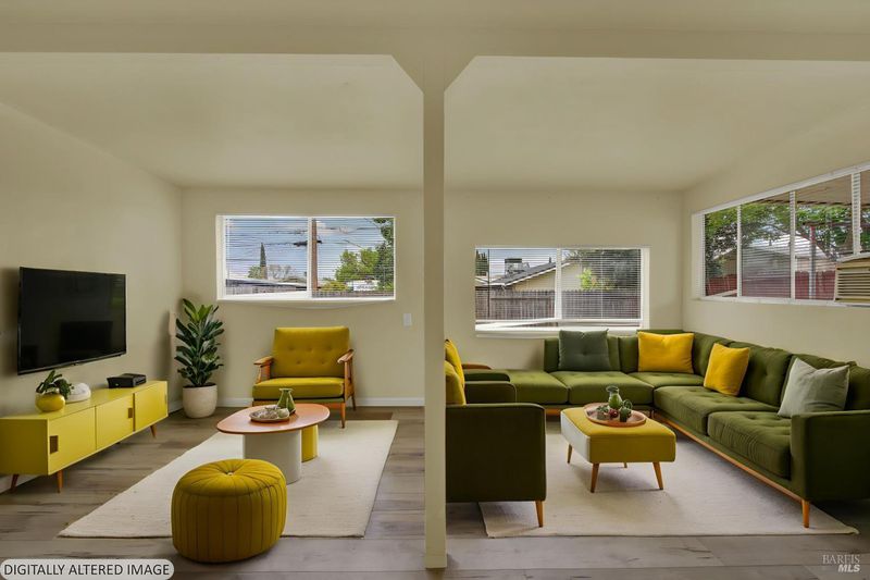 Whoa! You gotta stop for this great starter home. Priced to sell. One level, 3 bedrooms, 1 bath has additional expansive sunroom (not included in square footage). Kitchen has electric free-standing stove with skylight as well as skylight in the dining/living combo room with ceiling light-fan fixture. Bathroom has tile floors. Inside laundry includes washer. 1-car garage. Big backyard. Main electric panel updated. In close proximity to school and restaurants.