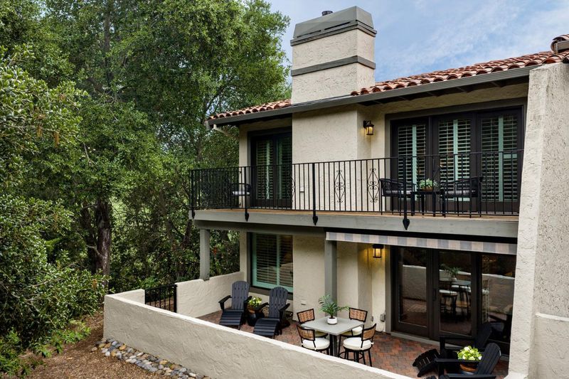 Spacious, updated and desirable Arroyo Rinconada end unit set in an idyllic cul de sac with creek/greenbelt views (Rio Vista = River View). Extensive upgrades throughout, including impressive kitchen, gorgeous hardwood floors, plantation shutters and new dual-pane windows and sliders. Open-concept floor plan features vaulted ceilings and picture windows, creating a wonderful indoor-outdoor feel. Remodeled gourmet kitchen features great counter space, 5-burner gas cooktop, Sub-Zero refrigerator, warming drawer and extensive custom cabinetry. Elegant living room includes a gas-burning fireplace and dining area that opens to a back patio, ideal for alfresco dining and gardening. A handsome open den/office area with fireplace looks out on greenery. Primary suite with vaulted ceiling, deck access, cedar-lined walk-in closet, dual vanity, skylight, spa-like shower enclosure and soaking tub. Guest bedrooms have ample closet space and deck access. Dedicated second floor laundry room. Resort-like amenities include a large community pool, spa, cabana and private tennis court set amid beautiful, well-maintained common grounds. Excellent schools. Conveniently located near La Rinconada Park, world-class restaurants, and shopping in Downtown Los Gatos, Saratoga Village and Downtown Campbell.