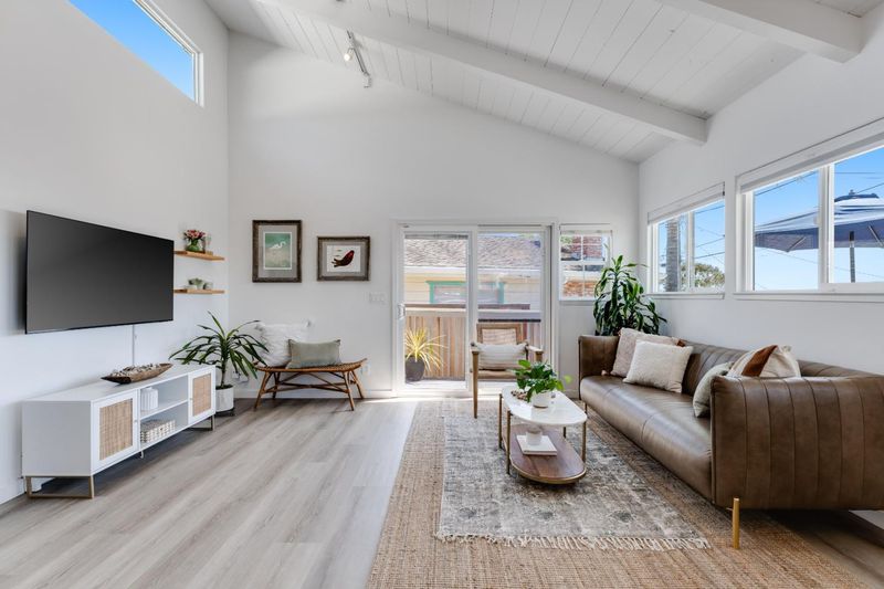 6am: Coffee on the front deck, ocean doing its thing, nowhere you need to be yet. 9am: Surf board's off the rack, you're down the beach path before most people have found their keys. 12pm: Back home, showered, new floors under your feet, tall ceilings above your head, the kind of place that makes a normal Tuesday feel like a vacation. 3pm: Wander into Aptos or Seacliff. Grab something from the shops, linger longer than planned. 6pm: Back on the front deck, drink in hand, the ocean spread out in front of you. Enjoying as the sunsets. Front row seat, every single night. 8pm: Fireplace on, the living room wrapping around you, the kitchen sitting there with its new countertops looking a little too good for takeout. 10pm: Hot tub, private backyard, stars if you're lucky and no reason to be anywhere else. Ocean views from the front, hot tub out back, beach path close enough to make this your every day. The hard part isn't living here, it's leaving.
