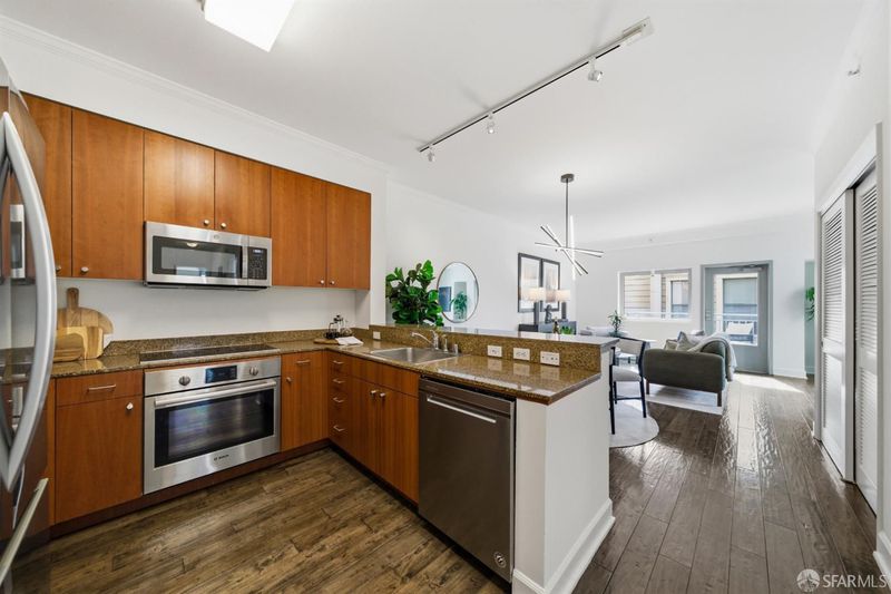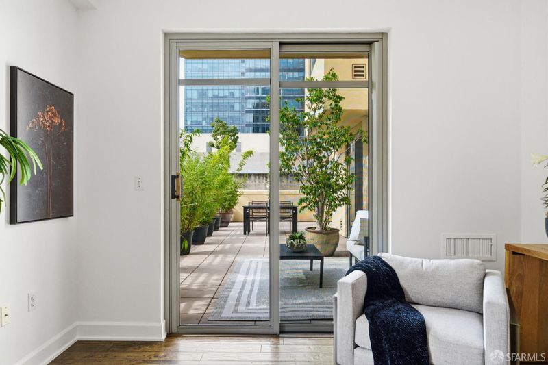 Enjoy the best of city life in this spacious 2BD/2BA residence, where an extra-large wraparound terrace accessible from both the living room and primary suite invites the outdoors in at every turn. Whether you're sipping morning coffee in the open air or hosting friends as the city glows at dusk, this seamless flow makes every moment feel special. Inside, the open kitchen impresses with abundant storage and a generous serving counter that flows naturally into the dining and entertaining areas. The serene primary suite features an updated ensuite bath, and the second bedroom offers a private retreat for guests or a dedicated home office, while a cozy reading nook in the living room is the perfect spot to unwind with a book. In-unit washer/dryer, parking, a 2nd intimate patio, and extra storage complete the picture. Step outside and the neighborhood delivers: SFMOMA, Yerba Buena Gardens, and Salesforce Park are at your doorstep, alongside vibrant dining and boutique shopping. With a Walk Score of 93 and a perfect Transit Score of 100, the entire city is yours to explore, yet coming home always feels like a retreat.