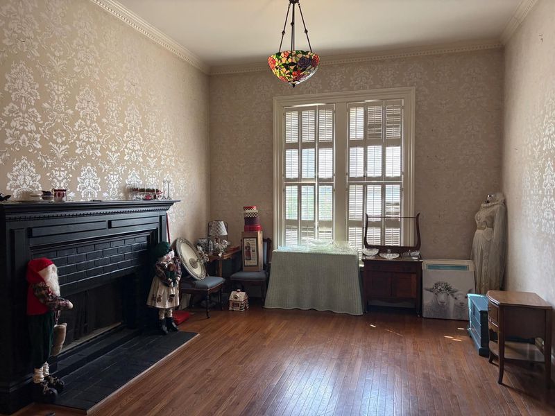 One-of-a-kind Victorian home listed on the historic register! Situated on an over 26,000 sq ft lot. This 4-bedroom, 2-bath residence with 2 additional 1/2 baths features many original details from a bygone era including crown molding, wood trim, beaded stained glass doors, tall ceilings, kitchen pass thru, original lighting throughout, fully fenced with iron gates, expansive patio, two driveways for extra parking...the list goes on and on. Hardwood floors in the kitchen, hallway, living room and primary bedroom. Spacious Living room with gas fireplace and decorative mantle. Master bedroom is downstairs with double door entry, walk in closet, and full bath. Detached 2-car garage, Air Conditioning, Alarm System, Window Shutters, Sun Porch, Curved Wooden Staircase and 28 Solar Panels. Many original features have been thoughtfully preserved, honoring the homes historic significance.This is a rare offering for those seeking a landmark home with character, space and history that simply cannot be duplicated.**New foundation, Roof, Plumbing and Electrical Redone in 1991**