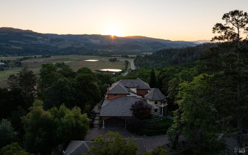 Nestled just above the valley floor with sweeping views across Napa Valley, 1312 Summit offers privacy without sacrificing proximity, just minutes from Calistoga and St. Helena. Spanning approximately 6225+/- sq.ft. of total conditioned living space, this 5-bedroom, 5.5-bath compound was built in 2010 and accommodates full-time living, entertaining, and extended stays. The current owner has enhanced the property with thoughtful upgrades and improvements, both inside and out. This Tuscan-inspired estate is designed to open to its surroundings. Retractable glass doors extend the main living space to a covered loggia overlooking an infinity-edge pool and spa, set against panoramic valley views. Both the main residence and guest house offer generous covered outdoor living areas for year-round use. The gourmet kitchen features Brazilian quartz countertops, Miele appliances, and a butler's pantry, flowing into the living and dining areas anchored by a gas fireplace. A covered courtyard with a wood-burning fireplace creates an intimate gathering space, equally inviting on warm evenings and cozy on cooler evenings and rainy days. The home includes two primary suites--one on the main level and one above--each positioned to capture the views, with spa-like baths and walk-in closets. The lower level features a private theater, wine cellar, and speakeasy-style lounge. A detached guest house with full kitchen, gas fireplace, one bedroom and one-and-a-half baths, provides privacy for visitors, while a motor court and 4-car garage allows for ample parking. Offering a rare balance of privacy, scale, and proximity, this is a Napa Valley property that lives effortlesslyequally suited for everyday living, weekend escapes, and exceptional entertaining.