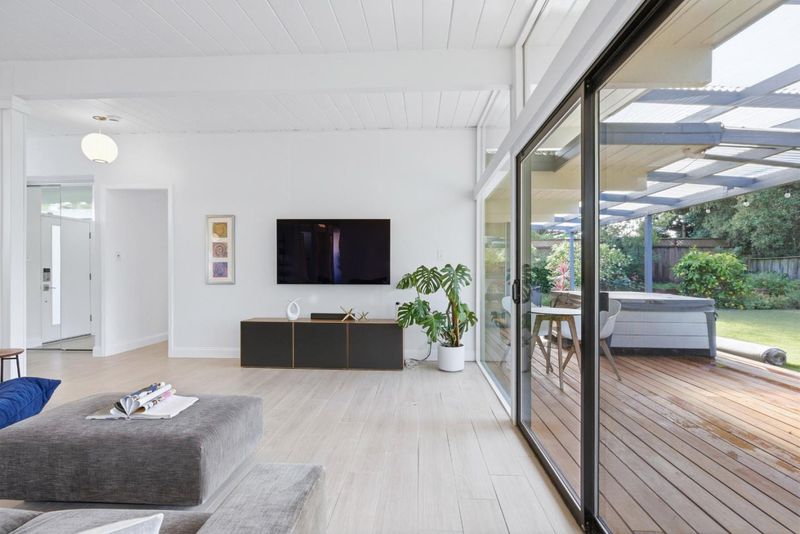 Gorgeous Eichler-style home in the highly sought-after Highlands community, showcasing the best of indoor-outdoor living with an open floor plan and abundant natural light. This 4-bedroom, 2-bath residence features an updated kitchen with a spacious island that flows seamlessly into the expansive living and dining areas, perfect for both everyday living and entertaining. Well-appointed bedrooms and updated bathrooms offer comfort and modern style. The spacious front yard provides privacy, while the beautifully landscaped backyard boasts a redwood deck, seasonal blooms, and a variety of fruit trees including orange, lemon, pear, apple, apricot, mulberry, and avocado. Located in a desirable neighborhood known for its strong community feel and scenic surroundings, this home is just minutes from shopping, hiking trails, and top-rated schools, with easy access to major freeways for a convenient commute.