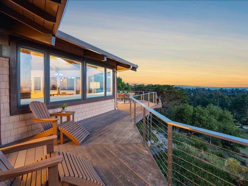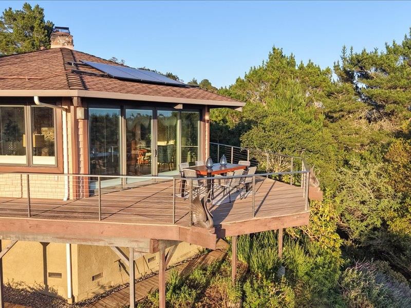 Enjoy sweeping unobstructed Monterey Bay and Ocean views from this thoughtfully designed single-level home in a prime Aptos location. Vaulted open-beam ceilings and abundant natural light highlight the main living area, which flows seamlessly to a wraparound deck ideal for enjoying the coastal scenery. This flexible floor plan offers 3 bedrooms, 2 bathrooms, and a separate bonus space perfect for a home office or guest use. Each bedroom features direct deck access, enhancing indoor-outdoor living. Set on just over 2 acres, this property offers privacy and usable space. Additional features include a large 2-car garage, RV carport, raised garden beds and owned solar. Conveniently located within walking distance to Aptos Village with shopping, dining, and groceries, and just minutes to local beaches and ideally located just moments from the forest of Nisene Marks State Park , with easy access to miles of hiking and biking trails through majestic redwoods.