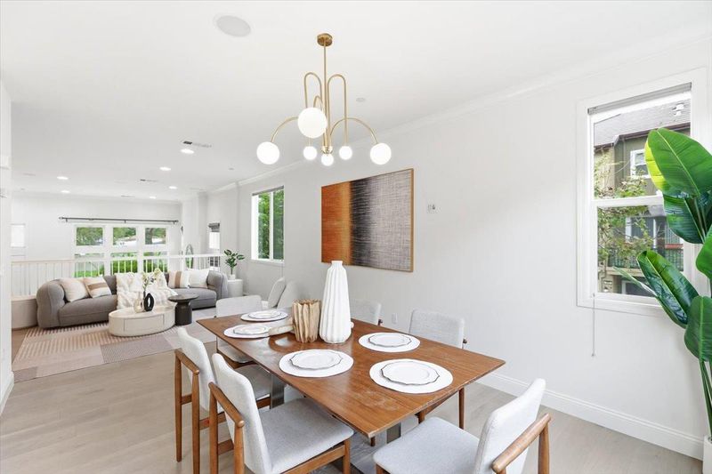 Beautiful end-unit townhome by Toll Brothers, perfectly positioned in the heart of Silicon Valley near major tech campuses. This bright and stylish Sunnyvale residence offers approximately 1,650 sq ft of thoughtfully designed living space with 3 bedrooms and 2.5 baths. Step into a light-filled living area highlighted by dramatic 13-foot ceilings and elegant front-facing windows, creating an inviting and airy ambiance. The open-concept family and dining area flows seamlessly into a beautifully upgraded chefs kitchen featuring stainless steel appliances, a Fotile range hood, gas range, and a generous island with sleek quartz countertopsperfect for entertaining and everyday living. Upstairs, unwind in spacious bedrooms, including a serene primary suite with vaulted ceilings and a spa-inspired bath complete with dual sinks, soaking tub, and separate shower. Convenient in-home laundry enhances comfort and ease. Enjoy the vibrant lifestyle with a short stroll to Seven Seas Park, and quick access to Sunnyvale Baylands Park, Levi's Stadium, and Shoreline Amphitheatre. With easy access to Highways 237, 101, and 85 and proximity to Apple, Google, Microsoft, Amazon, Meta, and LinkedIn, this is a home you wont want to miss.