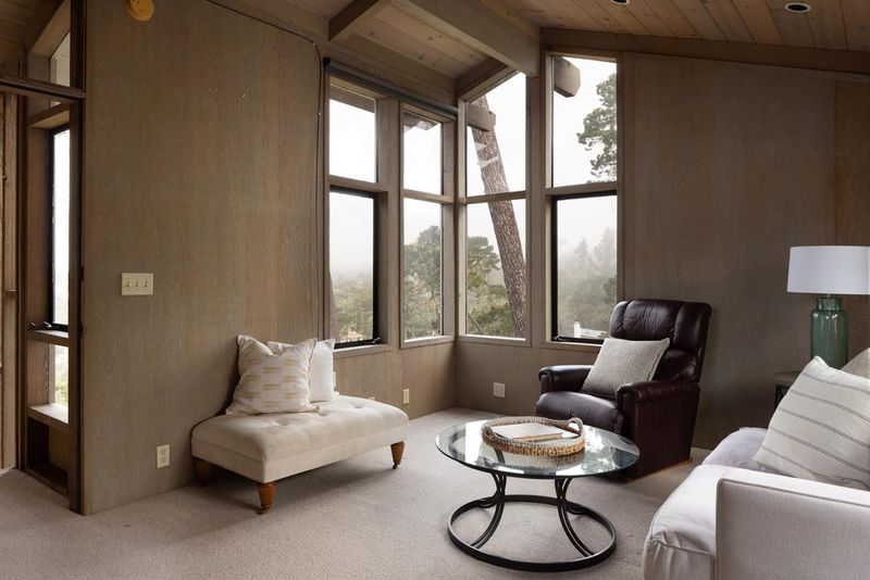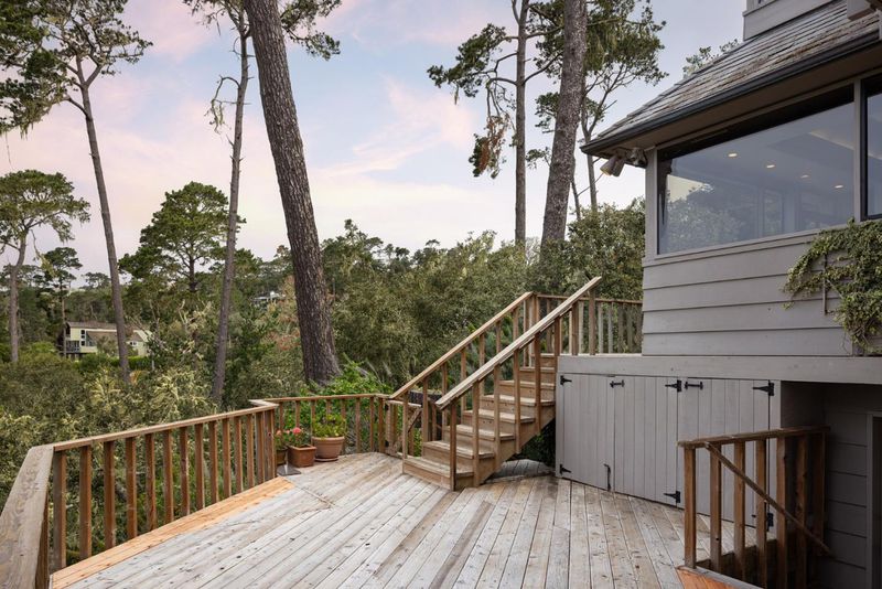 Nestled in a prime Pebble Beach location near The Lodge and Stillwater Cove, this stunning estate within an exclusive gated community offers privacy and natural beauty. Set on 1.35 acres, the 4,423 sq.ft. residence features 4 bedrooms and 5.5 baths, showcasing truly California architecture style with open beam ceilings, skylights, natural wood finishes, and abundant windows that fill the home with light and frame serene forested views. A charming brick courtyard leads to a beautiful entry, opening to a spacious living room that flows seamlessly into the dining area and kitchen with bar seating, ideal for everyday living and entertaining. A sitting room with wet bar and a private office with built-ins and a full bath offer versatile spaces suited for entertaining, work, or guest accommodations. The expansive primary suite offers a fireplace, sitting area, spa-like bath, and a unique loft office with a hidden half bath through armoire doors. Guest bedrooms, including one with a kitchenette, enjoy peaceful forest views. Expansive decks and manicured lawn grounds invite outdoor living, capturing partial views of Pebble Beach Golf Course, Pescadero Point, and Stillwater Cove beyond a tranquil wooded canyon. A 2-car attached garage completes this exceptional Pebble Beach retreat.