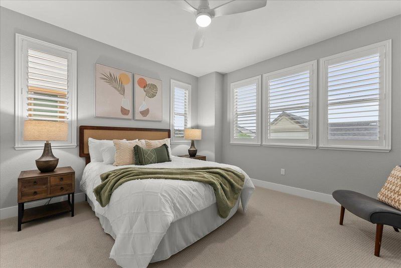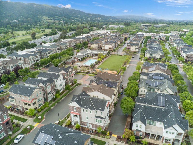 At just 11 years old, this well-maintained home is practically brand new, and its prime location at the end of a row and toward the back of the community makes it among the best in the area. The convenient downstairs fourth bedroom is a needed addition for guests or extended family. Warm finishes make everyone feel at home and the kitchen is open to the dining and family areas so the chef never feels separated from the action. The formal living room with French sliding doors onto the balcony provides additional entertaining space. The top floor includes the primary retreat with resort-style bathroom as well as the other two bedrooms and oversized laundry room with plenty of storage. You're just steps away from the community pool and within walking distance of shops and restaurants in addition to the easy access to 680 and 580. Don't let this dream home get away!