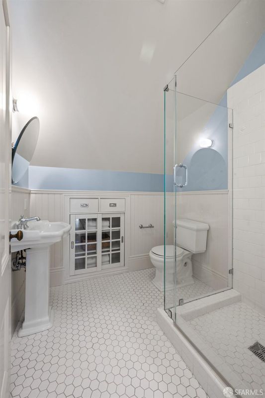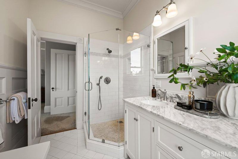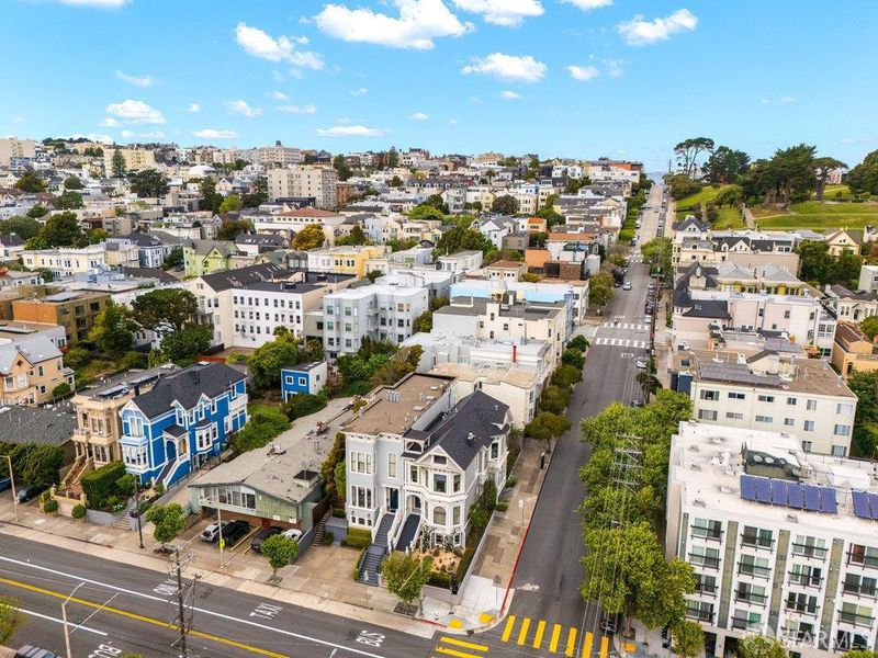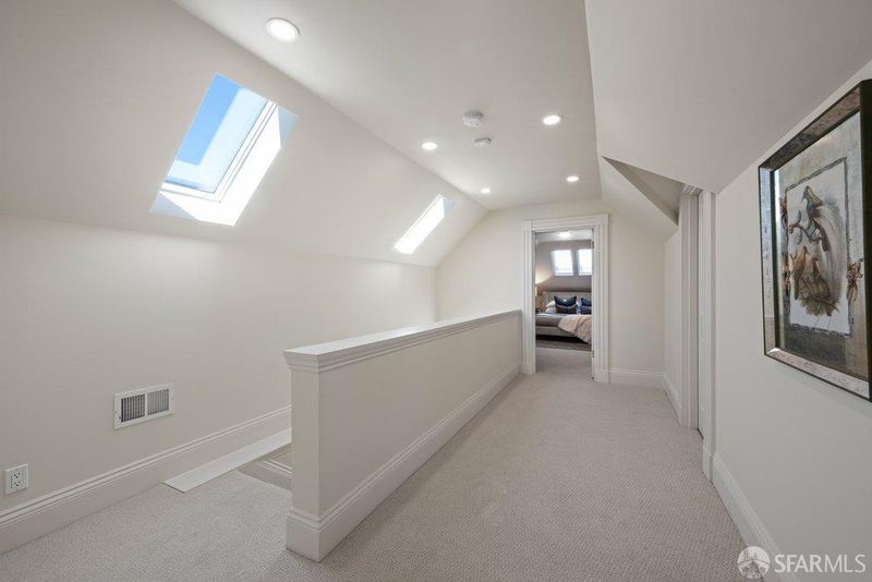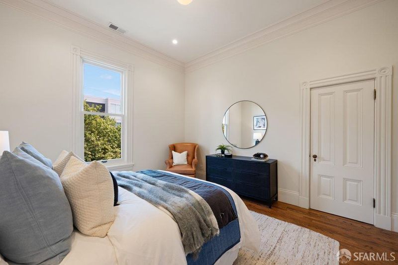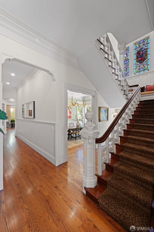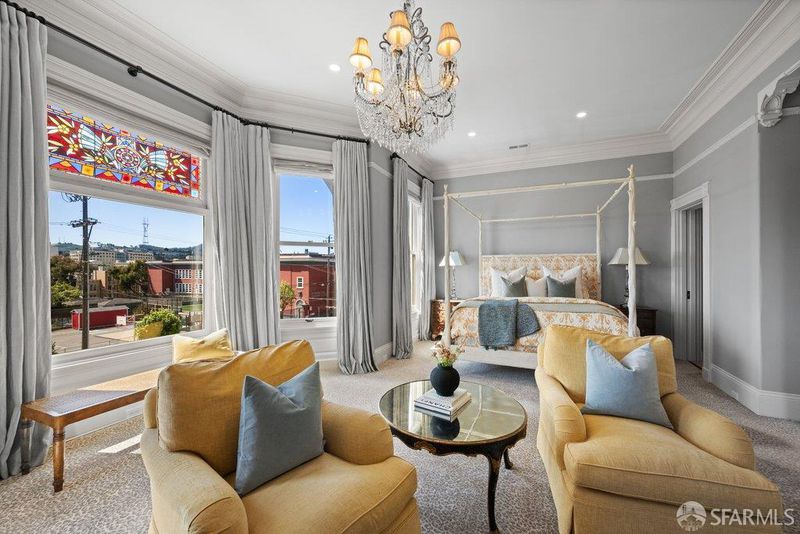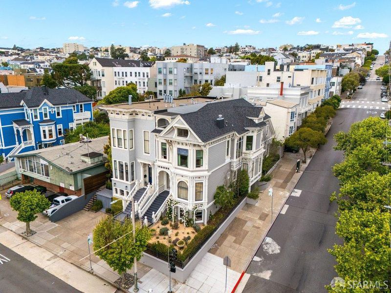 Video Preview! On a prominent Pacific Heights corner, 2 short blocks from Alta Plaza Park and between the urban community and convenience of Fillmore and Divisadero, 2700 California is a 6 bedroom home that was originally built in 1886 and was rebuilt and expanded to 4980 square feet in 2007. The wide, open south facing front stairs, pass the front garden. Admire the 19th Century Victorian grand jour and elegance. Timeless San Francisco architecture meets modern luxury: intricate millwork, soaring ceilings, and hardwood floors are seamlessly paired with contemporary upgrades to suit today's lifestyle. The grand foyer opens to the entire main floor, featuring 12' ceilings. Pocket doors open to the large formal living room with bay windows facing south. The formal dining room awaits. The chef's kitchen and family room, featuring custom cabinetry and stone countertops and opening to the outside, is the heart of the home. A butler's pantry leads back to the dining room. Above the grand staircase is the stunning stained glass window. The luxurious primary suite with 11'5" ceilings is at the front of the home. Each additional bedroom offers its own unique character that blends Victorian-inspired details with modern comfort. The first bedroom has a bath en suite. Past the laundry closet is the 3rd bedroom which shares a hall bath with the fourth bedroom on the floor. The top floor is a study, full bathroom, large closet and bedroom. The ground floor includes a bedroom, shown today as a family room, a full bathroom, and the garage.